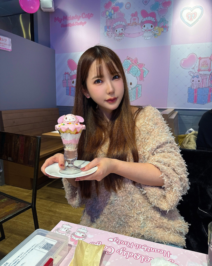 คุณฮาตาโนะโพสต์ภาพตอนไปเที่ยวคาเฟ่ธีมมายเมโลดี้ พร้อมแคปชั่นว่า "มายเมโลดี้คาเฟ่"