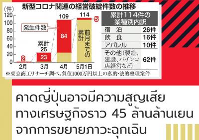 เมื่อวันที่ 23 เมษายน ทางรัฐบาลญี่ปุ่นได้แถลงข่าวและรายงานเศรษฐกิจรายเดือนประจำเดือนเมษายนนี้ว่า เนื่องจากการแพร่ระบาดของเชื้อไวรัสโควิด-19 และการประกาศภาวะฉุกเฉินจากทางรัฐบาล ได้ส่งผลกระทบต่อเศรษฐกิจของญี่ปุ่นอย่างรุนแรง โดยภาวะทางเศรษฐกิจถดถอยลงอย่างรวดเร็ว เป็นเวลาต่อเนื่องถึง 2 เดือน จนทำให้สภาพเศรษฐกิจญี่ปุ่นในตอนนี้อยู่ในภาวะคับขันเป็นอย่างมาก