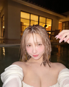 คุณมิคามิโพสต์ภาพแช่น้ำในสระน้ำที่รีสอร์ตของโอกินาว่า พร้อมแคปชั่นว่า "โอกินาว่า VLOG อัพลง YouTube แล้ว อย่าลืมเข้าไปดูกันนะ"