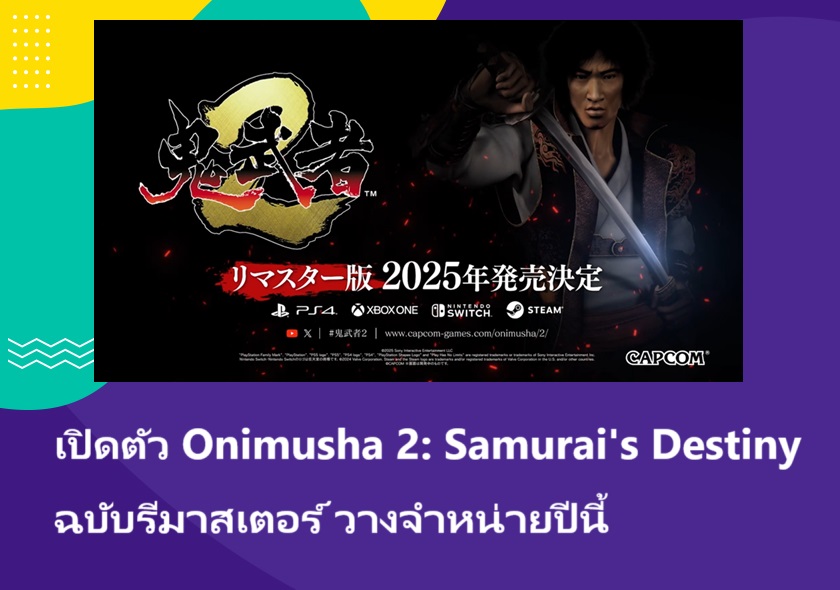 เกม Onimusha 2: Samurai's Destiny ฉบับรีมาสเตอร์ มีกำหนดวางจำหน่ายบนเครื่อง PlayStation 4, Xbox One, Nintendo Switch และ PC ภายในปี 2025