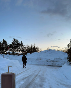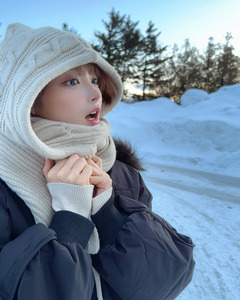 คุณโมโมโนกิโพสต์ภาพที่ถ่ายกลางหิมะที่ตกทับถมจนขาวโพลนไปทั่ว พร้อมแคปชั่นว่า "หิมะ~"