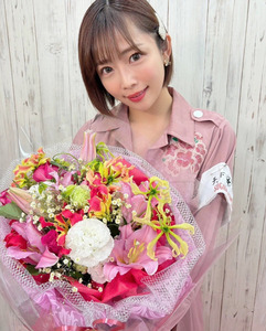คุณซากุระโพสต์ภาพถือช่อดอกไม้ที่ได้รับจากแฟนๆ พร้อมแคปชั่นดังนี้