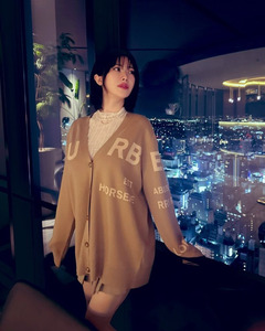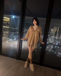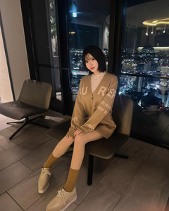 คุณสึจิอิโพสต์ภาพถ่ายในตึกสูงที่มองเห็นวิวของเมืองยามค่ำคืนผ่านทางหน้าต่าง พร้อมแคปชั่นเป็นแฮชแท็กว่า "วิวกลางคืน", "fyp" และ "เสื้อผ้า"