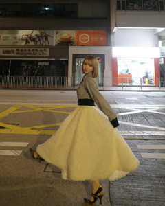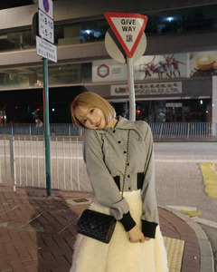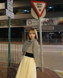 คุณมิคามิโพสต์ภาพลุคแฟชั่นฤดูหนาวที่ถ่ายท่ามกลางบรรยากาศยามค่ำคืนของเมืองฮ่องกง พร้อมแคปชั่นว่า "อยู่ฮ่องกง"