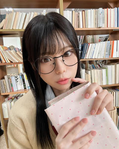 คุณอันซุโพสต์ภาพลุคสาวแว่นในห่องสมุด พร้อมแคปชั่นว่า "สาวแว่นที่มักอยู่ในห้องสมุดตลอด"
