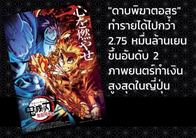 "ดาบพิฆาตอสูร" ทำรายได้ไปกว่า 2.75 หมื่นล้านเยน ขึ้นอันดับ 2 ภาพยนตร์ทำเงินสูงสุดในญี่ปุ่น