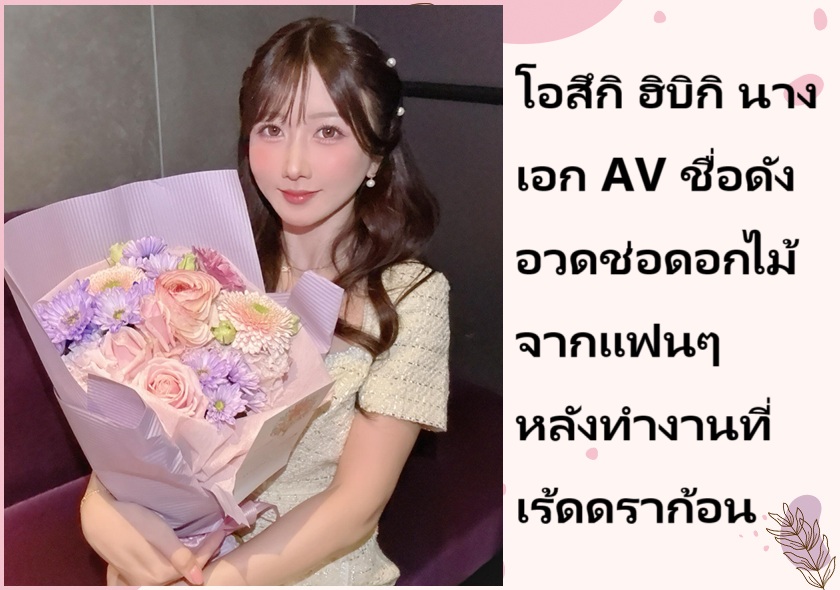 โอสึกิ ฮิบิกิ นางเอก AV ชื่อดัง อวดช่อดอกไม้จากแฟนๆ หลังทำงานที่เร้ดดราก้อน