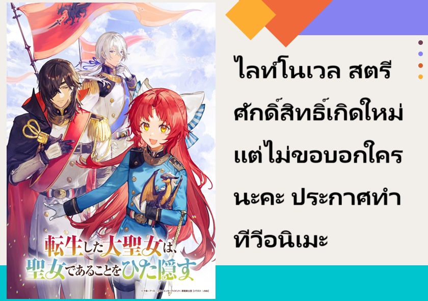 ไลท์โนเวล สตรีศักดิ์สิทธิ์เกิดใหม่ แต่ไม่ขอบอกใครนะคะ (Tensei Shita Daiseijo wa, Seijo de Aru Koto wo Hitakakusu) ประกาศทำทีวีอนิเมะ พร้อมเผยคลิปประกาศและนักพากย์หลักออกมาแล้ว