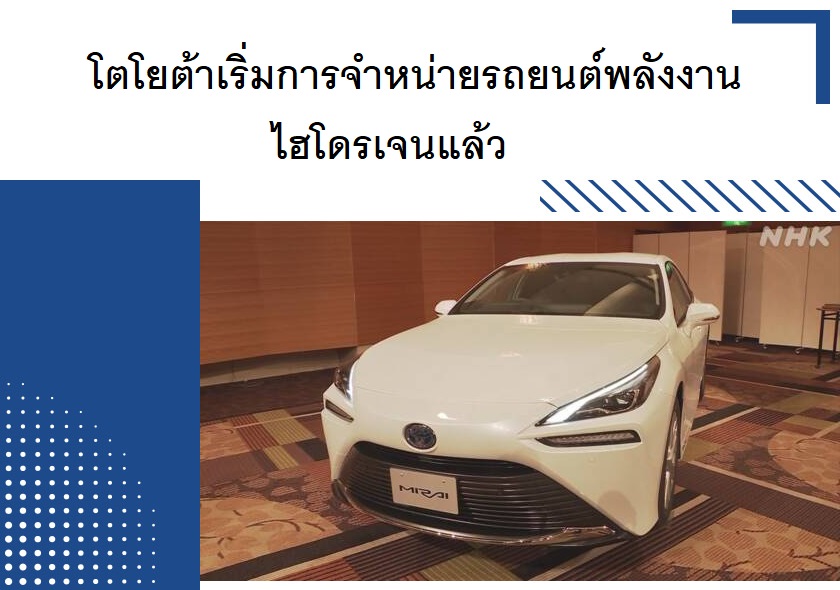 โตโยต้าเริ่มการจำหน่ายรถยนต์พลังงานไฮโดรเจนแล้ว
