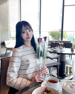คุณโอซากิโพสต์ภาพอวดความน่ารักคู่ช่อดอกไม้และขนมหวาน พร้อมเขียนแคปชั่นว่า "เขาว่ากันว่าเพราะร่วงโรยจึงงดงาม"