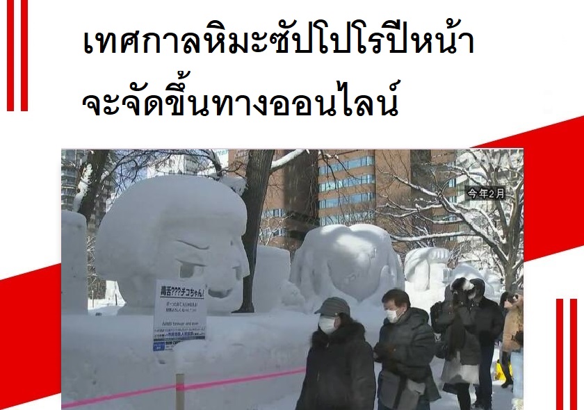 "เทศกาลหิมะซัปโปโร" ในปีหน้าจะจัดขึ้นทางออนไลน์แทนการให้ผู้คนมาเข้าร่วมงาน เนื่องจากการแพร่ระบาดอย่างต่อเนื่องของโควิด-19 ทำให้เทศกาลประจำฤดูหนาวของซัปโปโรที่ดำเนินมายาวนานกว่า 70 ปีต้องถูกยกเลิกไปในปีหน้า