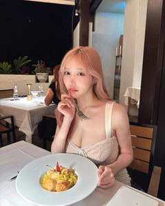 คุณโคโยอิโพสต์ภาพในชุดเดรสสวยขณะทานอาหาร พร้อมแคปชั่นว่า "ชอบพาสต้าเลมอนที่สุดเลย"