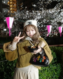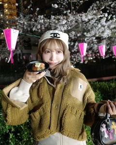คุณมิคามิโพสต์ภาพชมดอกซากุระที่แม่น้ำเมกุโระในกรุงโตเกียว พร้อมแคปชั่นว่า "ขนมดังโงะดีกว่าดอกไม้"