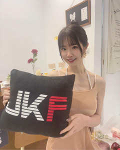 ในโพสต์ 1 คุณชิราคามิโพสต์ภาพถือหมอนที่มีโลโก้ JKF ซึ่งเป็นนิตยสารของไต้หวัน พร้อมเขียนแคปชั่นดังนี้