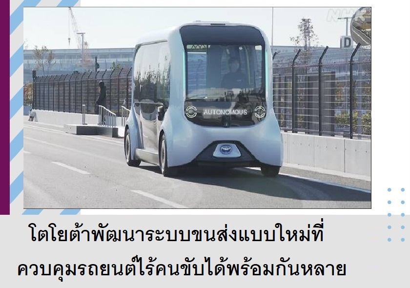 "โตโยต้ามอเตอร์" หนึ่งในผู้ผลิตรถยนต์รายใหญ่ของญี่ปุ่นได้พัฒนาระบบขนส่งแบบใหม่ที่สามารถควบคุมรถยนต์ไร้คนขับได้พร้อมกันหลายคัน และได้เปิดตัวต่อสื่อมวลชนเมื่อวันที่ 21 ธันวาคม ณ กรุงโตเกียว