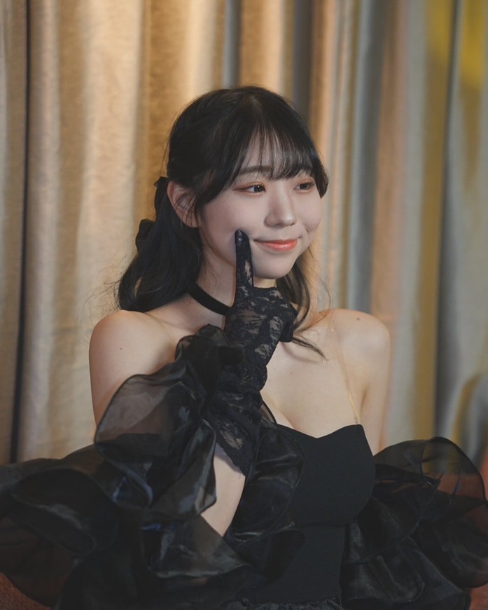 ในโพสต์ 2 คุณโมโมตะโพสต์ภาพในชุดเดรสเกาะอกสีดำ พร้อมแคปชั่นเป็นอิโมจิรูปหัวใจสีดำและก้อนเมฆความคิด
