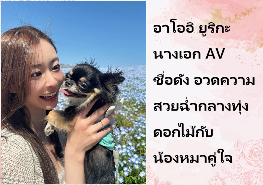 อาโออิ ยูริกะ นางเอก AV ชื่อดัง อวดความสวยฉ่ำกลางทุ่งดอกไม้กับน้องหมาคู่ใจ