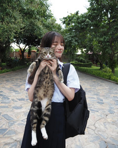 คุณมิยาชิตะโพสต์ภาพแต่งชุดนักเรียนไทย พร้อมแคปชั่นเป็นอิโมจิรูปแมวและหัวใจสีเขียว