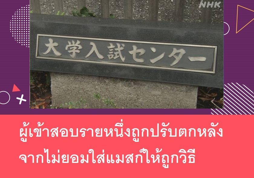 "การสอบเข้ามหาวิทยาลัย" รอบแรกที่จัดขึ้นในวันที่ 16-17 มกราคม ท่ามกลางสถานการณ์ที่มีการแพร่ระบาดของโควิด-19 ได้มีผู้เข้าสอบรายหนึ่งถูกปรับตกทุกวิชา เนื่องจากเจ้าตัวไม่ยอมใส่แมสก์ให้ถูกวิธี โดยใส่แมสก์แบบปิดแค่ปากแต่ไม่ปิดจมูก แม้ว่าจะถูกทางเจ้าหน้าที่คุมสอบเตือนซ้ำหลายครั้งแล้วก็ตาม