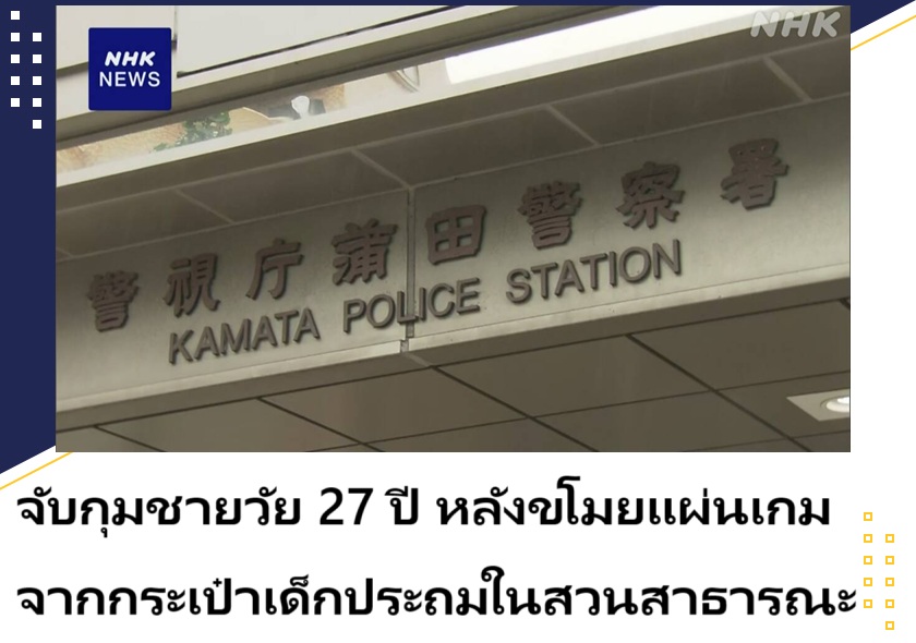 นายฮาชิโมโตะ เรียวอิจิ อายุ 27 ปี ไม่ทราบที่อยู่อาศัยและอาชีพ ถูกตำรวจจับกุมหลังขโมยแผ่นเกมจากกระเป๋าของเด็กประถมที่วางไว้ในสวนสาธารณะของกรุงโตเกียว
