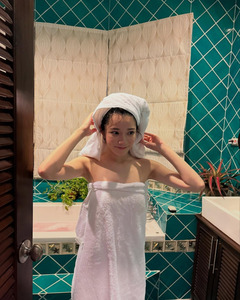 คุณมิยาชิตะโพสต์ภาพช็อตนุ่งผ้าเช็ดตัว พร้อมแคปชั่นเป็นอิโมจิรูปฟองสบู่