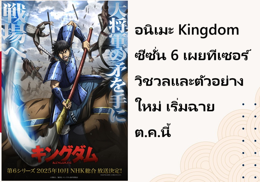 อนิเมะ Kingdom ซีซั่น 6 เผยทีเซอร์วิชวลและตัวอย่างใหม่ เริ่มฉายต.ค.นี้