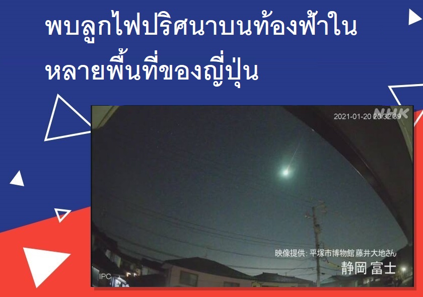 ชาวญี่ปุ่นจำนวนมากได้โพสต์ข้อความบนโลกโซเชียลว่ามีการพบเห็นลูกไฟปริศนาเหนือท้องฟ้าในภูมิภาคต่างๆ ของประเทศญี่ปุ่น เช่น คันโต โทไก และโอซาก้า เมื่อวันที่ 20 มกราคม เวลา 20.30 น.