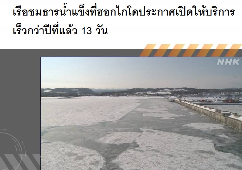 เรือชมธารน้ำแข็งที่ฮอกไกโดประกาศเปิดให้บริการเร็วกว่าปีที่แล้ว 13 วัน
