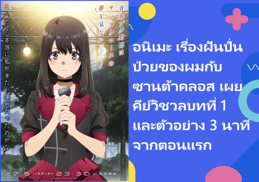 อนิเมะ เรื่องฝันปั่นป่วยของผมกับซานต้าคลอส (Seishun Buta Yarou wa Santa Claus no Yume wo Minai) เผยภาพคีย์วิชวลบท "ฝันปั่นป่วยของผมกับนักร้องผู้หลงทาง" และตัวอย่าง 3 นาทีจากตอนแรกออกมาแล้ว