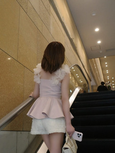 "เสื้อทรงเพปลัม (Peplum) ที่สายเสื้อเป็นลายดอกไม้น่ารักมากค่ะ"