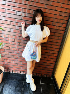 คุณโคมินาโตะโพสต์ภาพลุคแฟชั่นน่ารักชิคๆ พร้อมกับแคปชั่นเป็นอิโมจิรูปหัวใจสีขาว