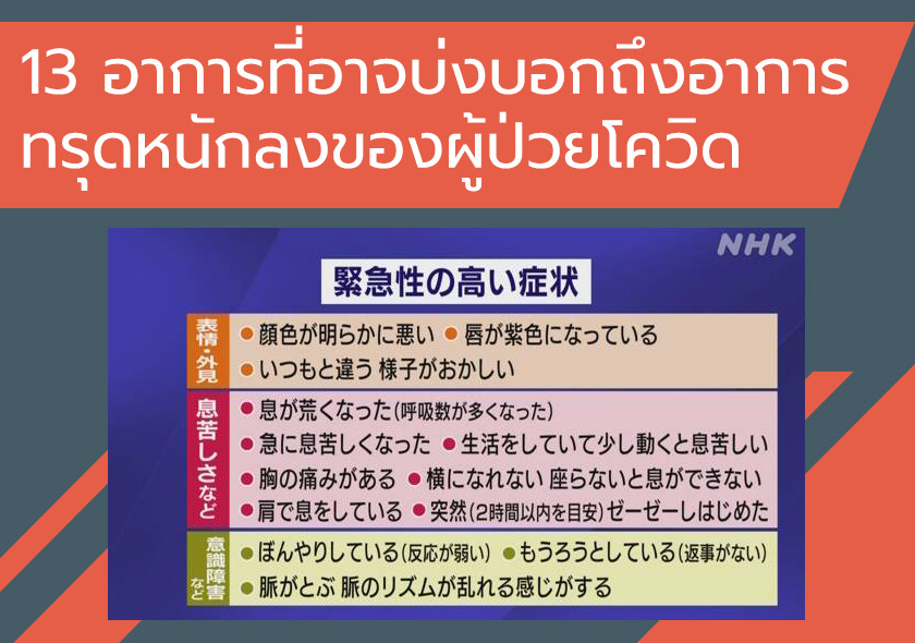 ซึ่งข้อสังเกตอาการดังกล่าวที่กระทรวงสาธารณสุขญี่ปุ่นได้แจ้งไว้มี 13 ข้อดังนี้