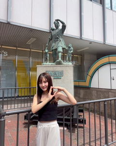 ในโพสต์ 2 คุณมิโซโนะโพสต์ภาพถ่ายหน้าสถานีโอคายามะ พร้อมแคปชั่นว่า "ท่าโมโมทาโร่กับท่าลูกพีช"