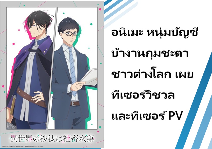อนิเมะ หนุ่มบัญชีบ้างานกุมชะตาชาวต่างโลก (Isekai no Sata wa Shachiku Shidai) เผยทีเซอร์วิชวลและทีเซอร์ PV รวมถึงนักพากย์ออกมาแล้ว