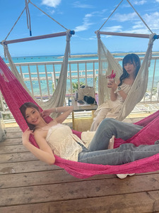 ในโพสต์ 1 คุณอาโออิโพสต์ภาพนั่งชมแสงอาทิตย์ยามเย็นริมทะเลเกาะมิยาโกะ พร้อมแคปชั่นว่า "นั่งดูพระอาทิตย์ตกดินกับทุกคนค่ะ สวยมาก~"
