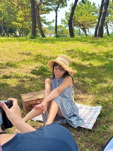 ในโพสต์ 1 คุณคาวาโกเอะโพสต์ภาพเบื้องหลังถ่ายแบบสุดน่ารัก พร้อมแคปชั่นว่า "ระหว่างปิกนิกที่สวนสาธารณะกับริมทะเล อยากเดทแบบไหนดี?"