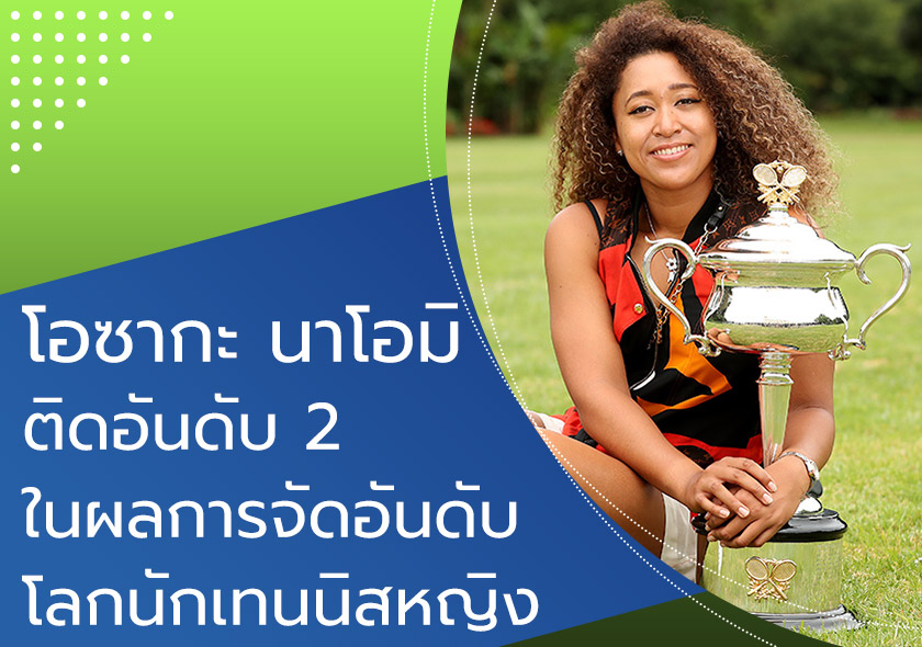 โอซากะ นาโอมิ ติดอันดับ 2 ในผลการจัดอันดับโลกนักเทนนิสหญิง