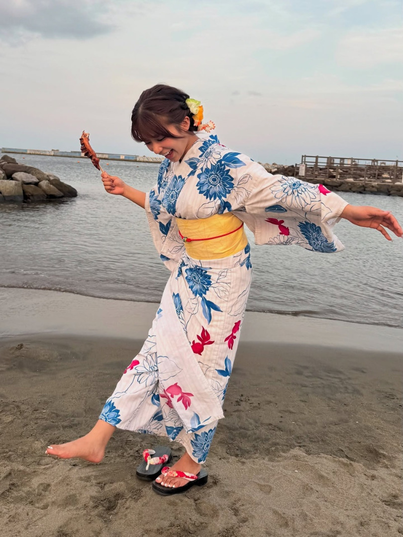 ในโพสต์ 1 คุณคาวาโกเอะโพสต์ภาพในชุดยูกาตะ พร้อมแคปชั่นดังนี้