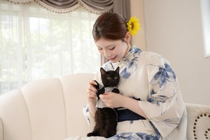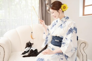 คามิกิ เรย์ นางเอก AV ชื่อดัง สวมชุดยูกาตะเสิร์ฟความน่ารักกับเหล่าน้องแมว