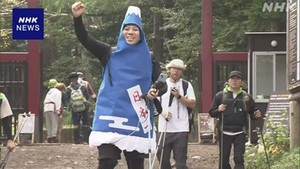 ส่วนสามีภรรยาคู่หนึ่งจากโตเกียวกล่าวว่า "เรามาปีนเขาเพื่อเป็นที่ระลึกครบรอบ 40 ปีค่ะ กังวลเรื่องสภาพอากาศอยู่เหมือนกัน แต่ก็จะพยายามปีนให้ถึงยอดเขาอย่างปลอดภัยให้ได้"