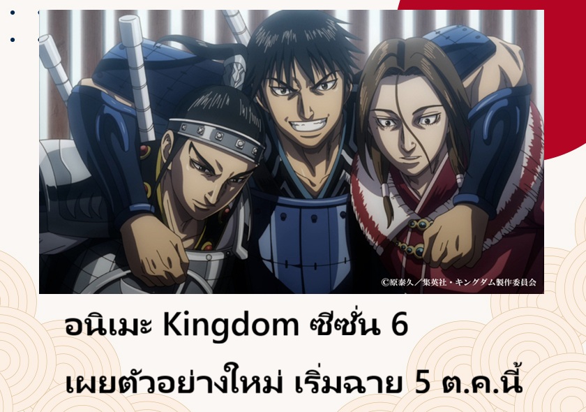 อนิเมะ Kingdom ซีซั่น 6 เผยตัวอย่างใหม่ เริ่มฉาย 5 ต.ค.นี้