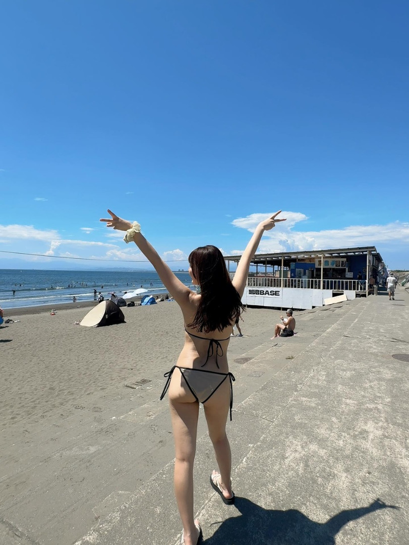 คุณฮาซึกิโพสต์ภาพนุ่งบิกินี่ที่ชายหาดโชนัน พร้อมแคปชั่นว่า "ต่อไปมาสร้างความทรงจำดีๆ ในฤดูใบไม้ร่วงกันเถอะ!"