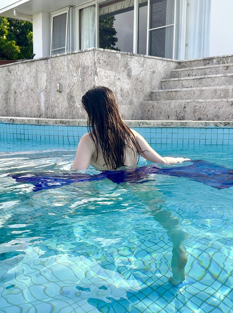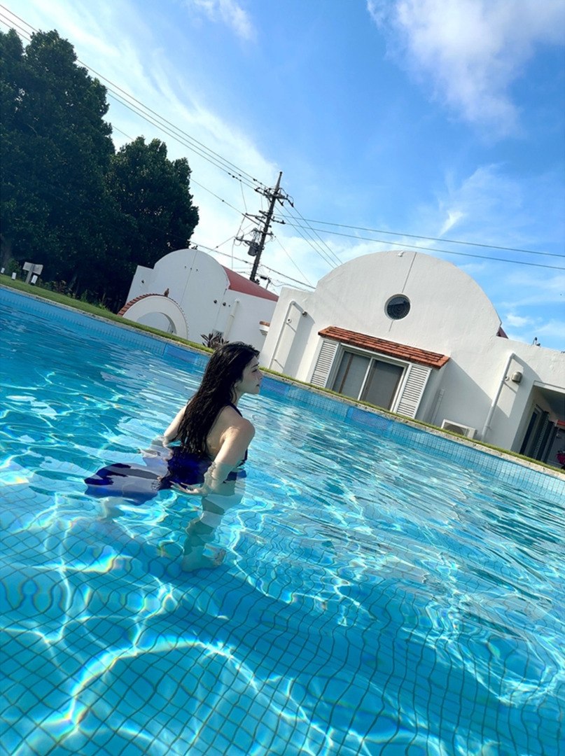 คุณฮอนโจโพสต์ภาพนุ่งชุดว่ายน้ำลงสระ พร้อมแคปชั่นว่า "หน้าร้อนจะหมดแล้วเนอะ"