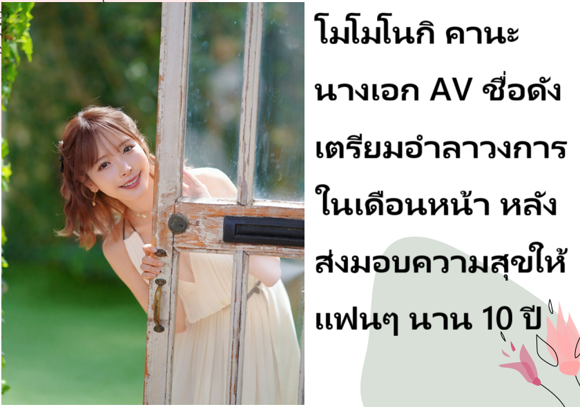 คุณโมโมโนกิ คานะ (Momonogi Kana) ดารา AV ชื่อดังวัย 28 ปี ได้ออกมาประกาศเตรียมอำลาวงการ AV ในเดือนตุลาคมนี้ หลังส่งมอบความสุขให้แฟนๆ มานานถึง 10 ปี