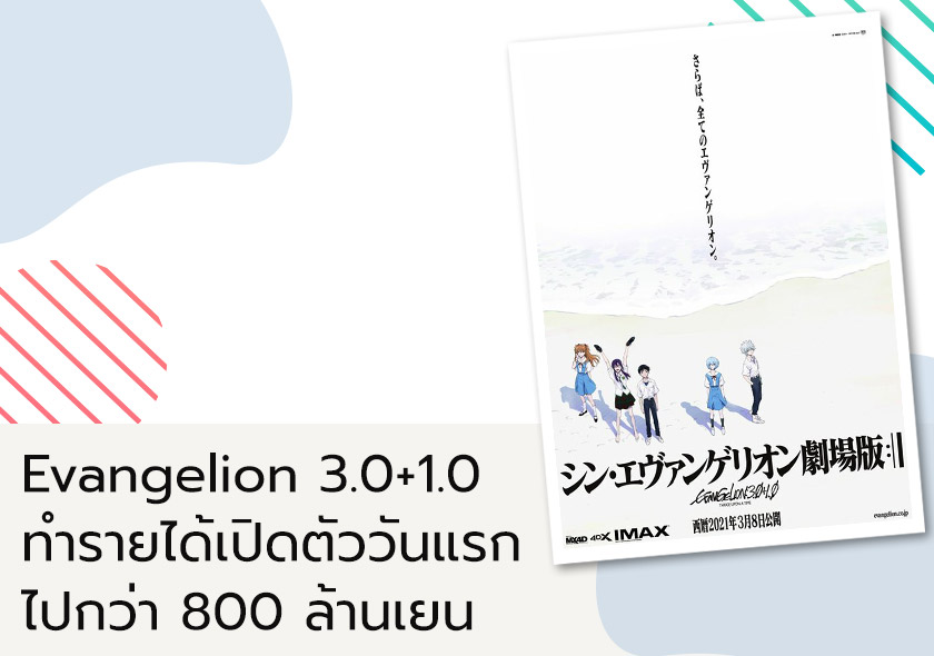 Evangelion 3.0+1.0 ทำรายได้เปิดตัววันแรกไปกว่า 800 ล้านเยน