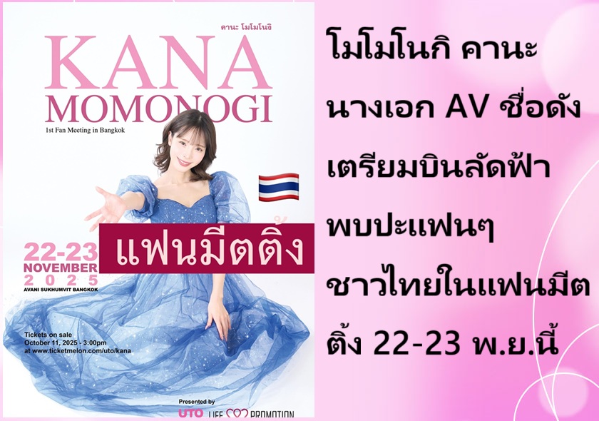 คุณโมโมโนกิ คานะ (Momonogi Kana) ดารา AV ชื่อดังวัย 28 ปี ได้ออกมาประกาศจัดแฟนมีตติ้งครั้งแรกที่ประเทศไทยอย่างเป็นการ