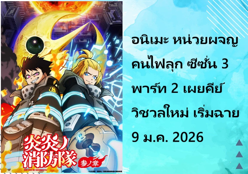 อนิเมะ หน่วยผจญคนไฟลุก ซีซั่น 3 พาร์ท 2 เผยคีย์วิชวลใหม่ เริ่มฉาย 9 ม.ค. 2026