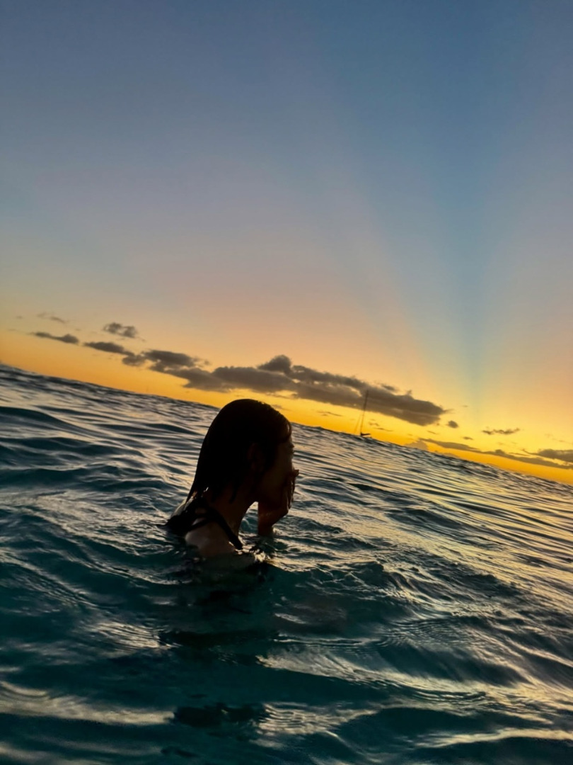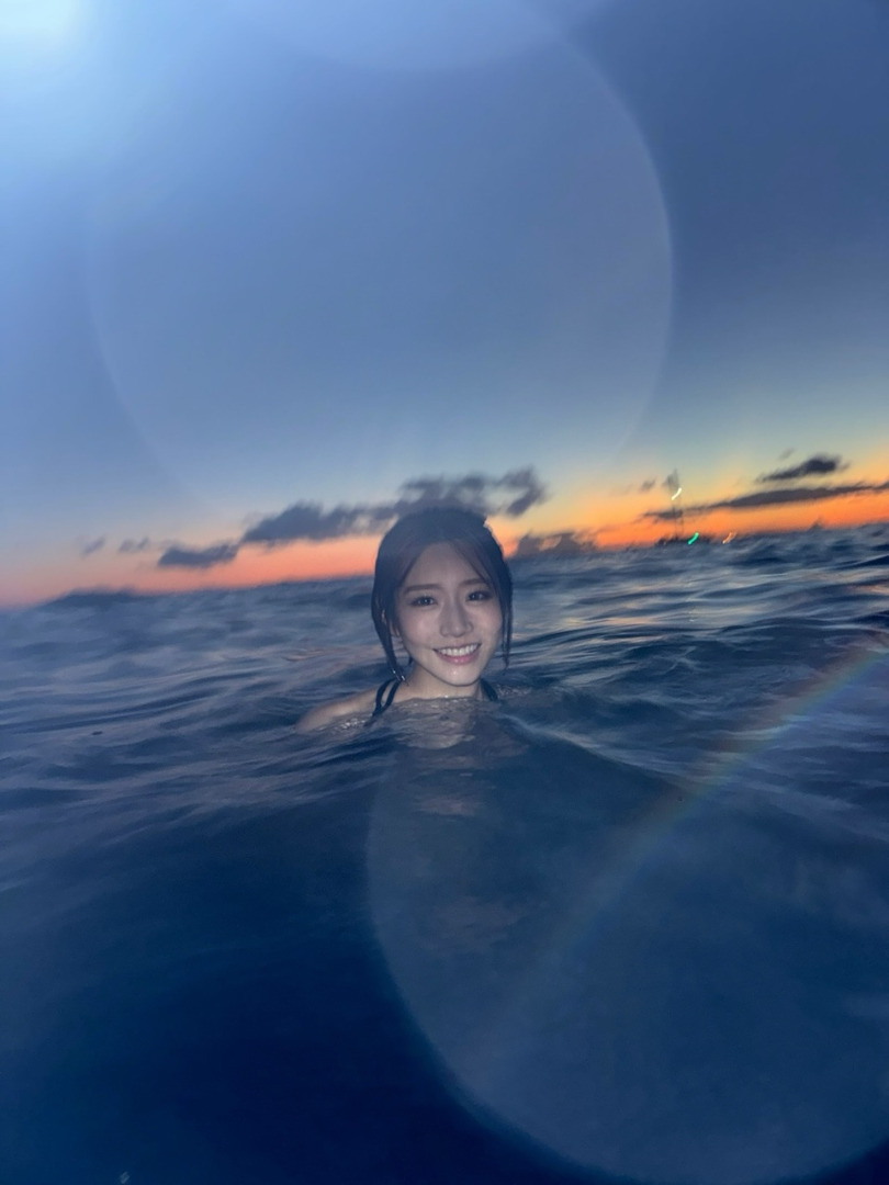 คุณคาวาคิตะโพสต์ภาพตอนเล่นน้ำในสระว่ายน้ำที่โรงแรมในฮาวาย พร้อมแคปชั่นว่า "วันที่เอาแต่เล่นน้ำอย่างเดียวที่ฮาวาย"