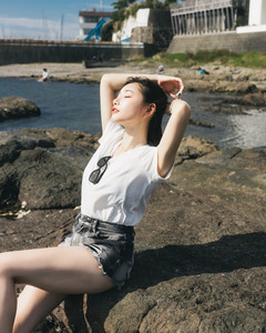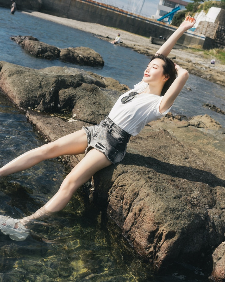 มิซึฮะ จิฮารุ นางเอก AV ชื่อดัง อวดช็อตสวยน่ารักเปล่งออร่าความขาวรับลมทะเล