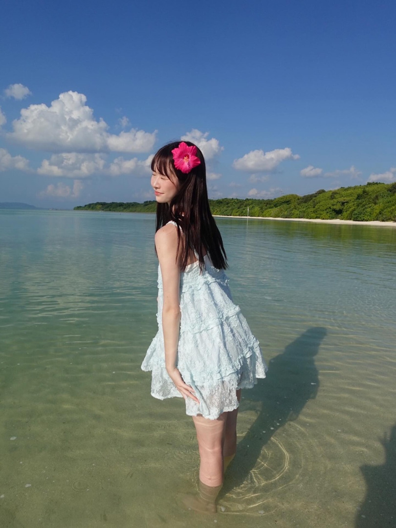 ในโพสต์ 1 คุณชิราคามิโพสต์ภาพนุ่งบิกินี่ที่ชายหาดเกาะอิชิงากิ พร้อมแคปชั่นว่า "ทะเลที่เกาะอิชิงากิสวยมากเลยค่ะ"